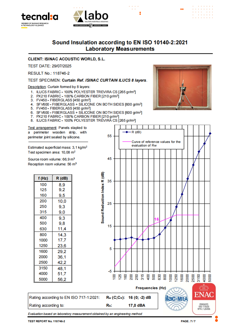Στο πλαίσιο αυτό, διαθέτουμε μία ολοκληρωμένη σειρά ηχομονωτικών κουρτινών υψηλών προδιαγραφών, με χαρακτηριστικά που τεκμηριώνονται εργαστηριακά: